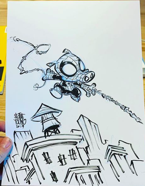 Skottie Young posted Miles Morales and Spider-Ham art on his Instagram.