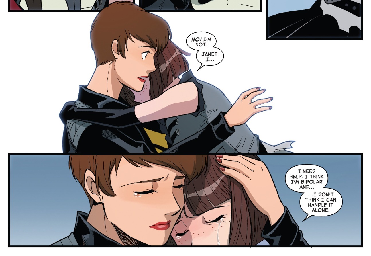 Here is an example when hugging is crucial. Nadia has had a tough life. She recently has pushed herself to her limits and has realized she may be bipolar. Despite being extremely intelligent and powerful, she realizes that she can’t, and shouldn’t, deal with with this realization alone. It’s okay to ask others for help.