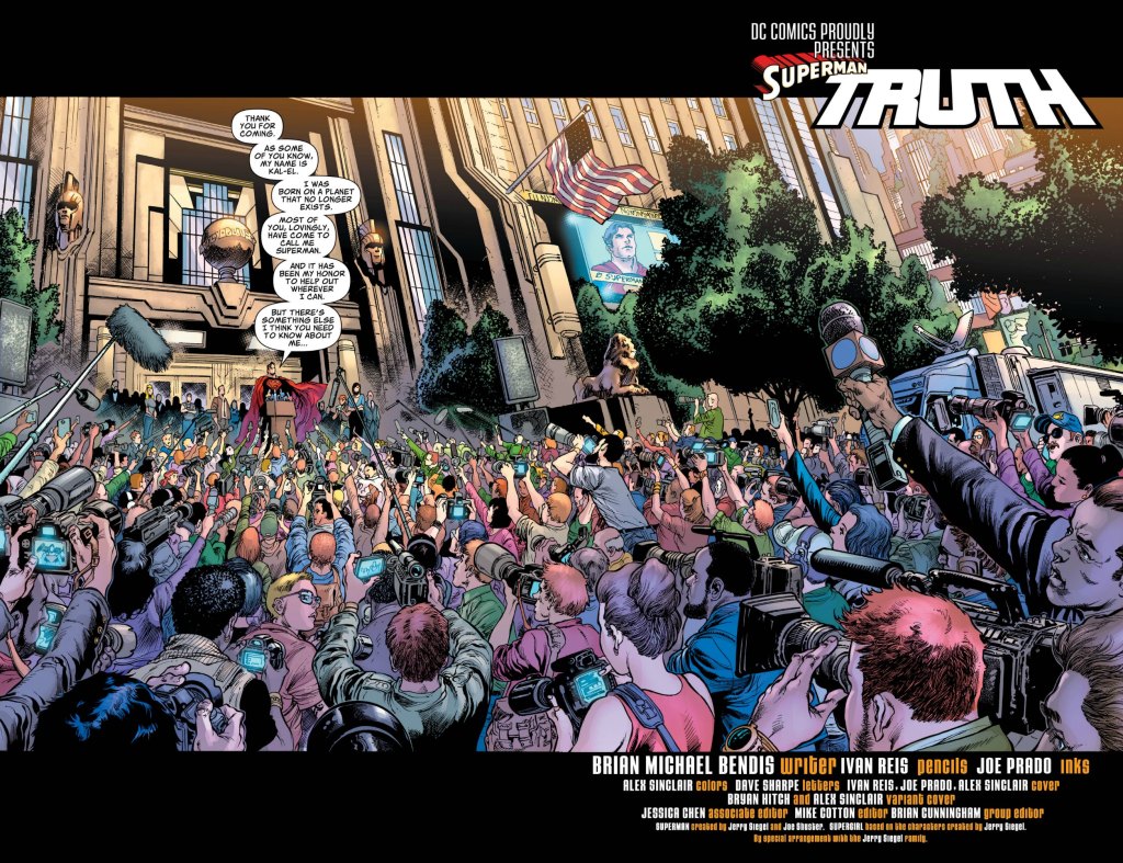 This isn’t the first time Superman’s identity has been revealed. In fact, it happened just four years ago in a story arc also entitled “Truth.” (You can read what I wrote about about that over here). The difference now is in the execution. It’s evident from this first issue Brian Michael Bendis has different plans for how things will play out.