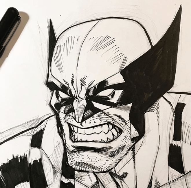 Mike Choi posted Wolverine ballpoint pen art on his Instagram.