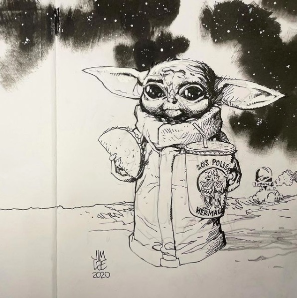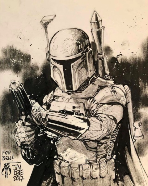 Jim Lee posted an older Boba Fett sketch and a Baby Yoda sketch he drew on his Twitch on his Instagram.