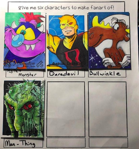 Aaron Laurich posted new sketch cards on his Instagram. You can buy his art at his Etsy store.
