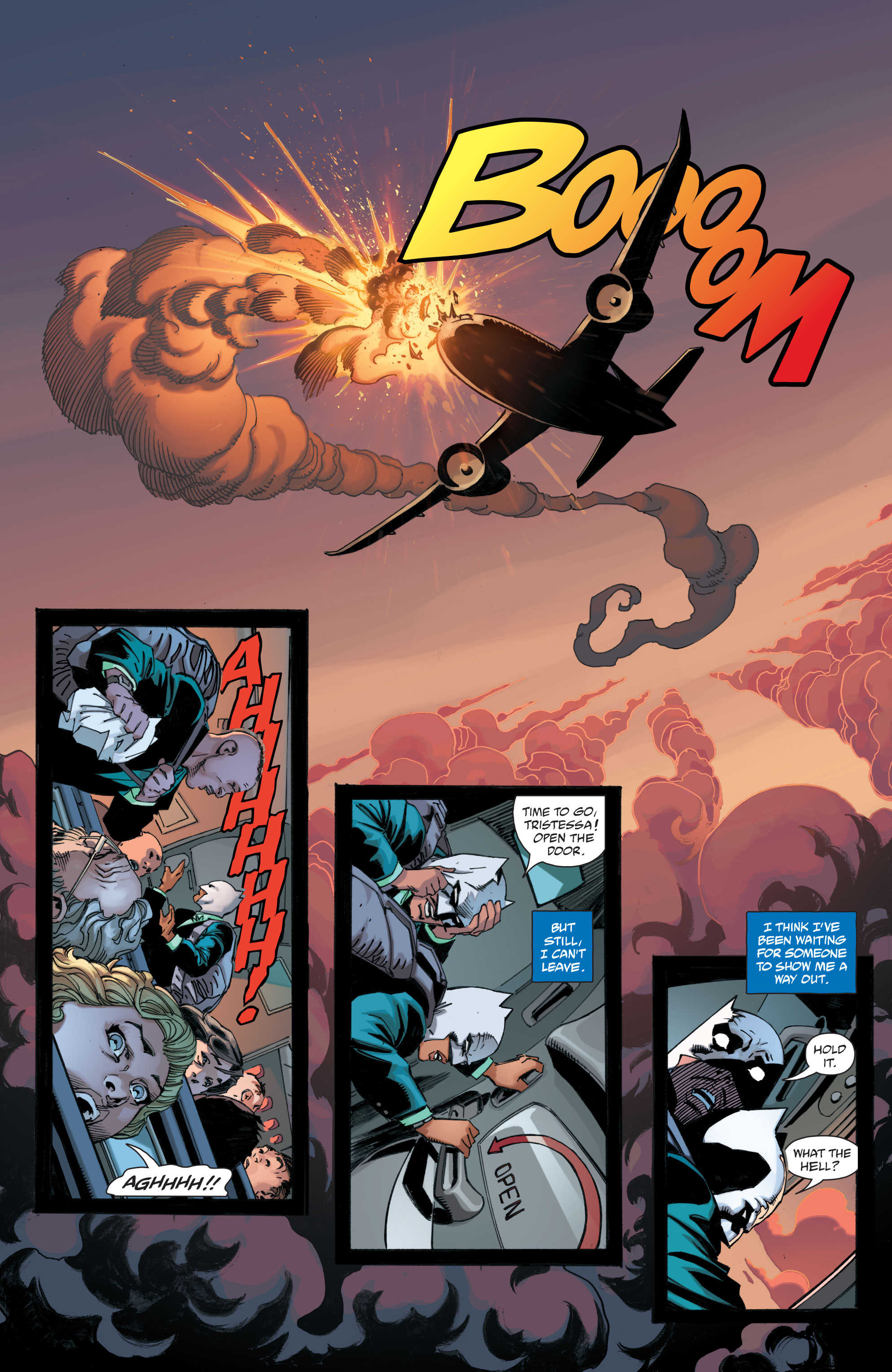 If you look at the preview pages (above), you’ll see we have a strange mystery brewing when a plane is hijacked by a group sporting white Batman masks. We also have an appearance by Beryl Hutchinson a.k.a. Knight (the former sidekick, Squire, to the UK version of Batman). If the mystery of the plane being hijacked wasn’t enticing enough, you’ll want to see what Beryl’s fate is after her encounter with this group. This, and the fact it was a Wayne Airlines flight, is what brings Batman into the story.