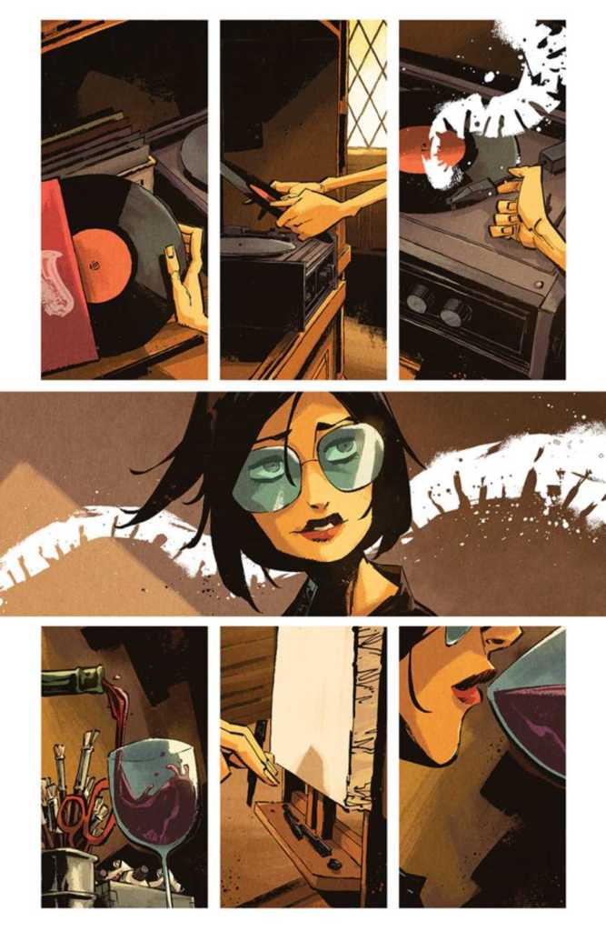 It’s always refreshing to read a book that focuses on story and character development rather just a bunch of big “comic book action” scenes. In some ways, it’s a bigger test for the writer and artist to move the story along when you have, or example, a scene of a character simply walking through a house, as seen above. I found myself more focused with the story, waiting to see what might jump out on the next panel or page.