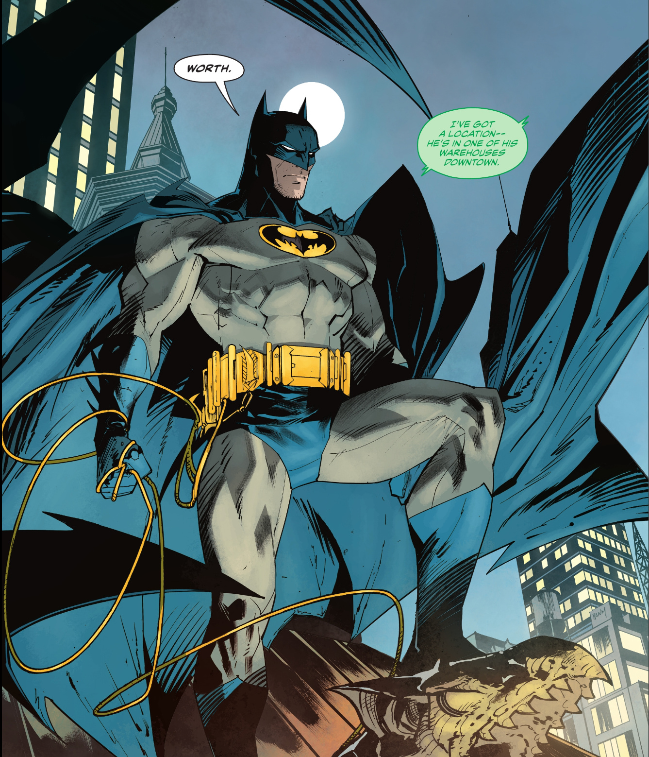 After the events of Joker War, Bruce Wayne has found himself with a lot less money. (Read the story arc for the full details). Less money means Batman has to be a little more selective in what he uses. He’s had to rely more on his skills rather than toys and gadgets. He even moved out of Wayne Manor and into a brownstone in the city in order to be closer to the action.