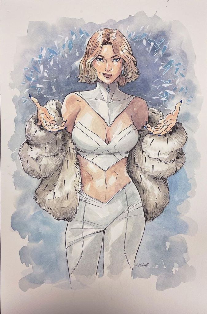 Danica Brine posted watercolor Emma Frost art on her Instagram. You can purchase her and Nick Bradshaw’s art at www.artbycanucks.com.