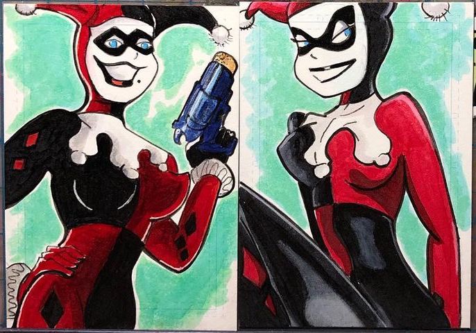 Aaron Laurich posted Harley Quinn sketch cards on his Instagram. Check out his Etsy store to see what sketch cards he has available for purchase.