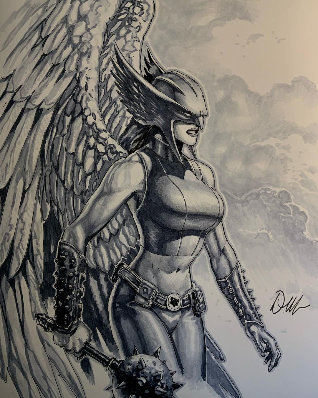 Doug Mahnke posted Hawkgirl art on his Instagram. (You can see his colored version there as well).