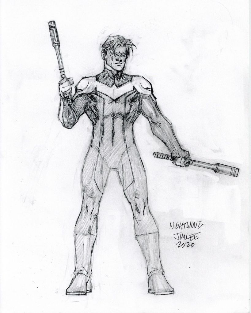 Jim Lee posted his pencils on his Instagram for character designs that inspired the look for Gotham Knights video game. (You can watch interviews about the game from SDCC HERE).