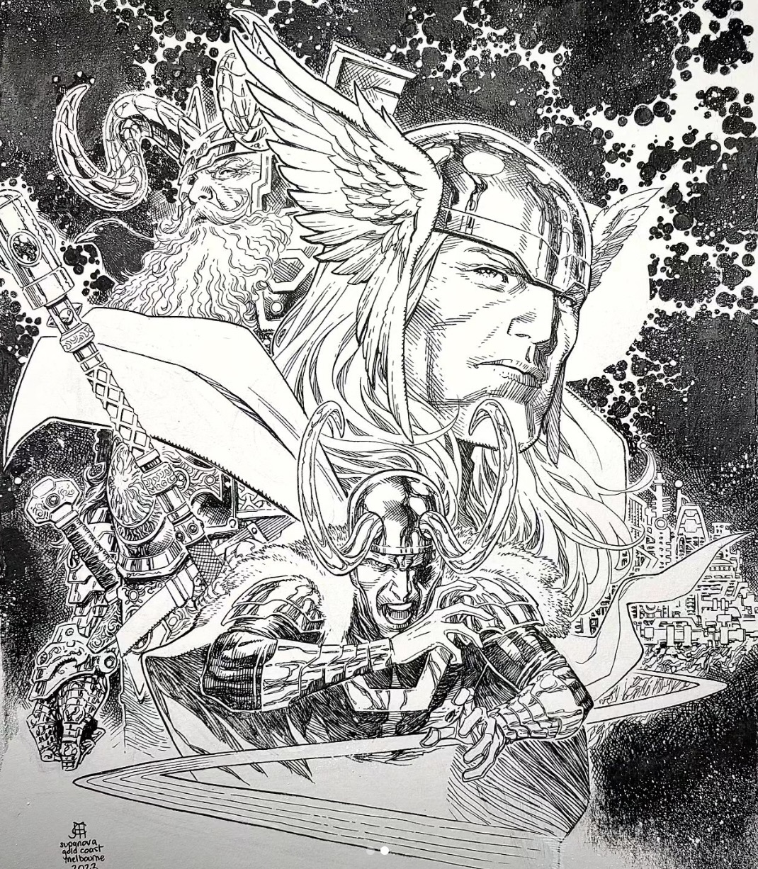 Jim Cheung posted Miguel O’Hara/Spider-Man 2099 and Thor art on his Instagram.