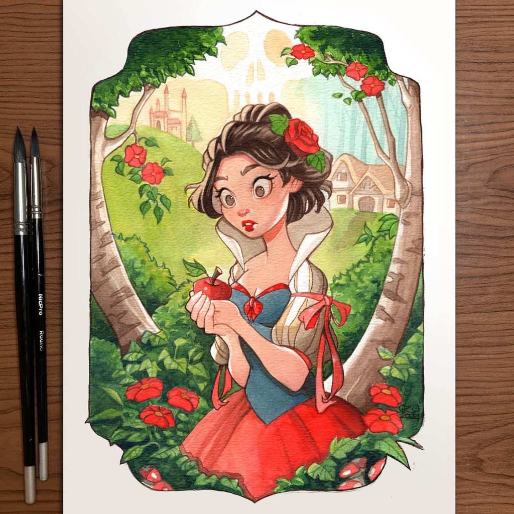 Chrissie Zullo Uminga posted Snow White watercolor art on her Instagram.